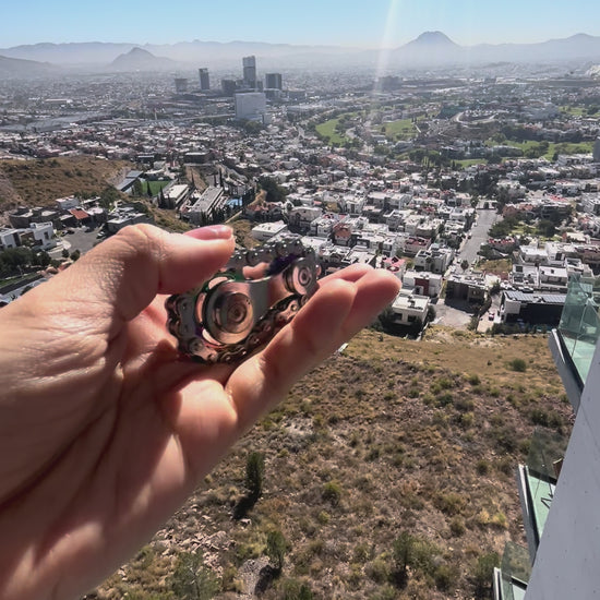 Su acabado metálico le da peso, calidad y una sensación mucho más premium que un fidget común.